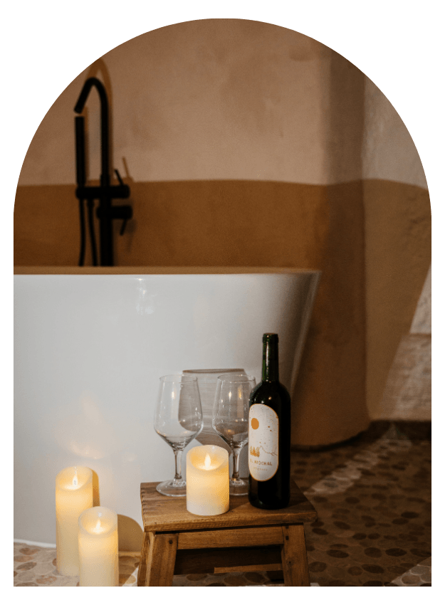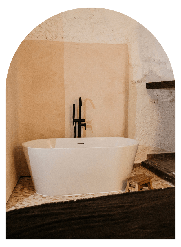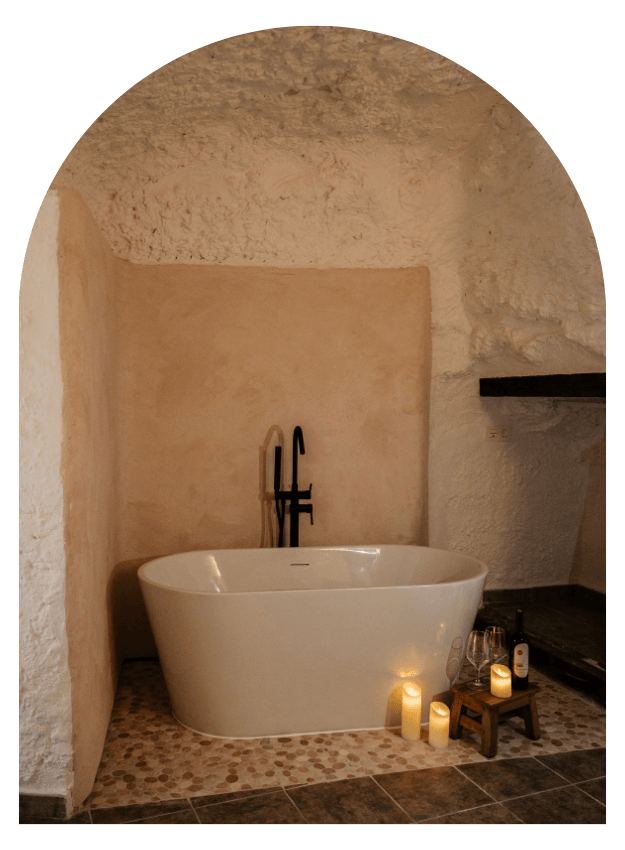 Cueva de lujo tipo apartamento con bañera de diseño. Ambiente íntimo ideal para parejas